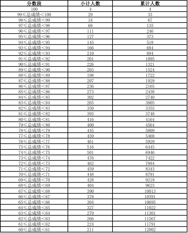 云南省2026年体育专业统考合格考生成绩分数段统计表