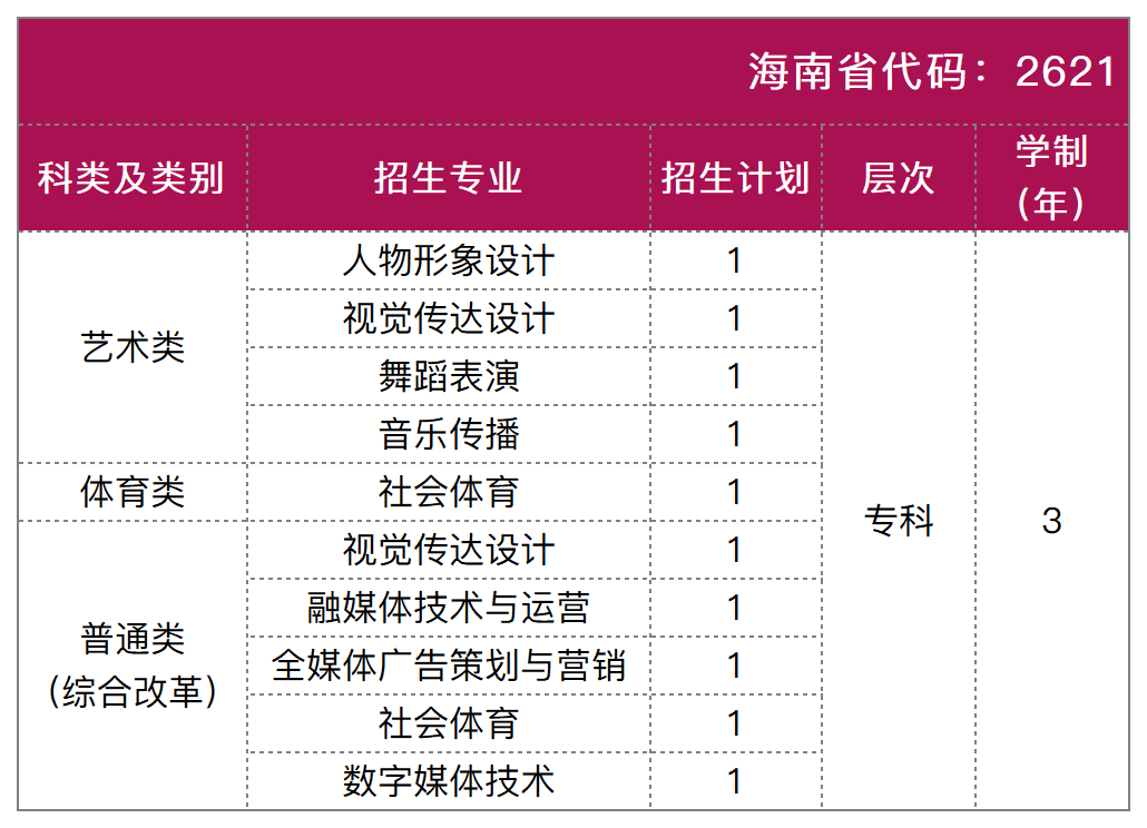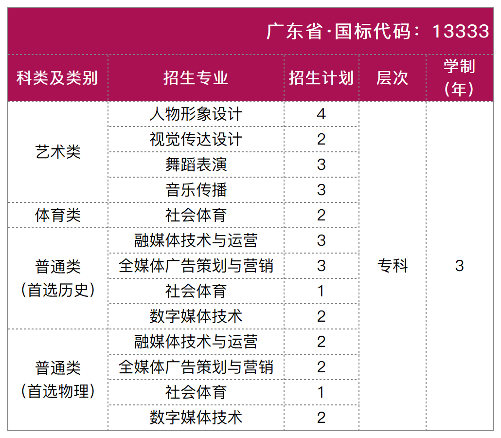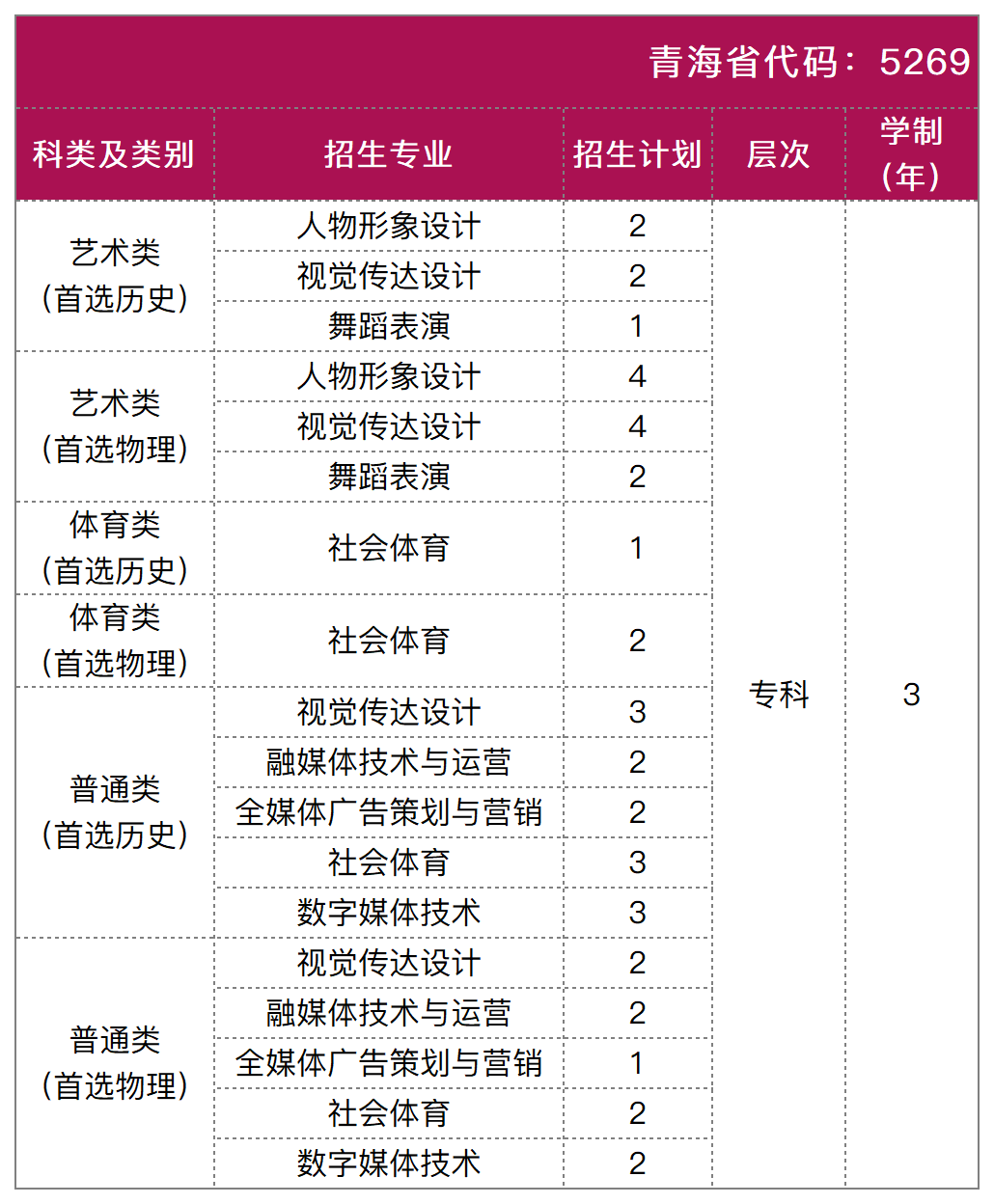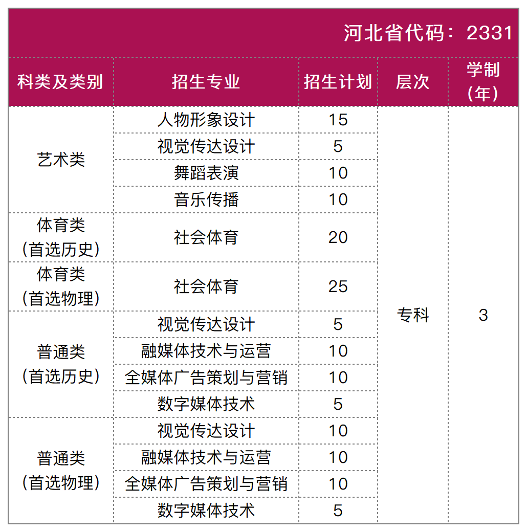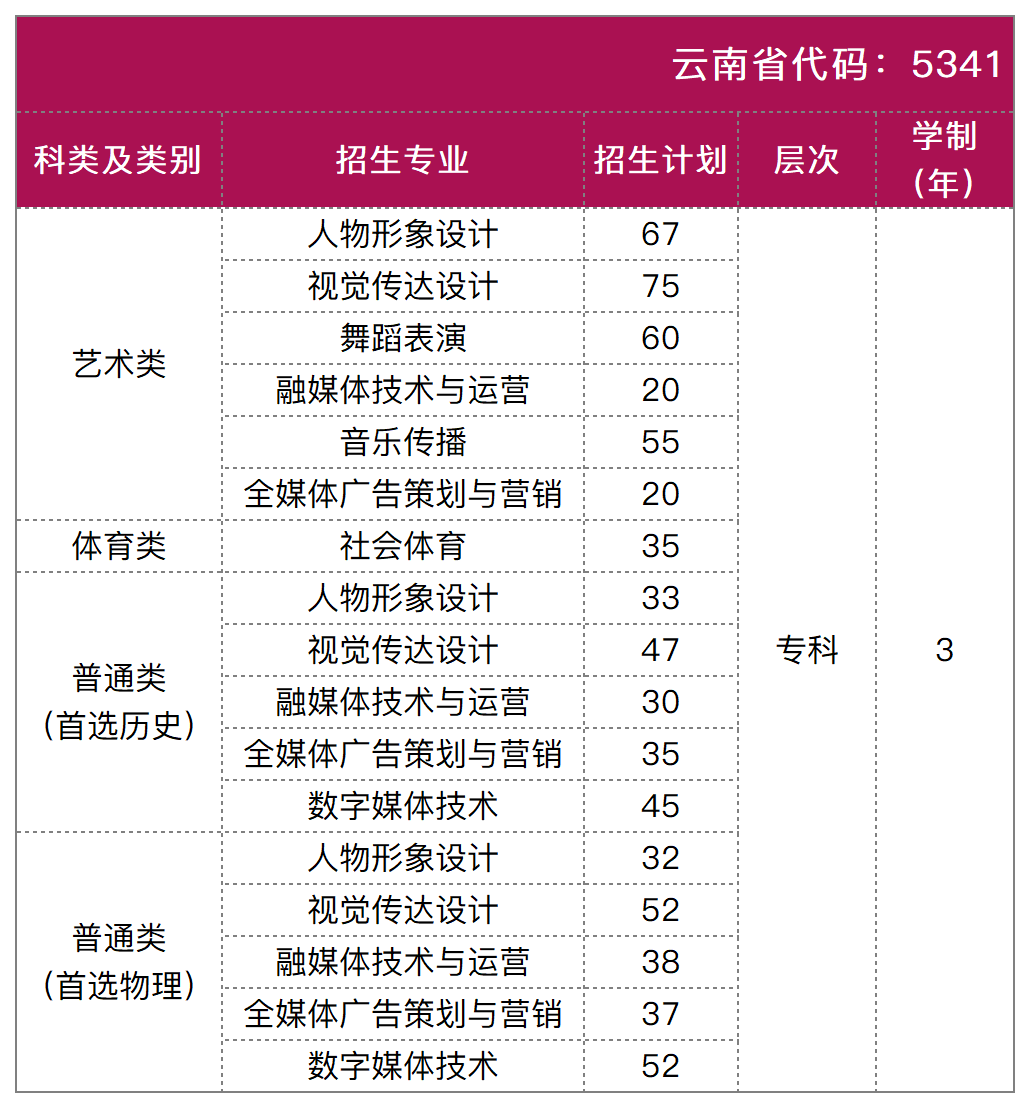 昆明传媒学院2025年高职(专科)分省分专业招生计划