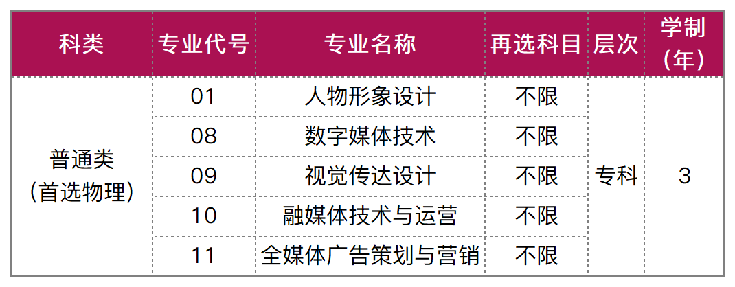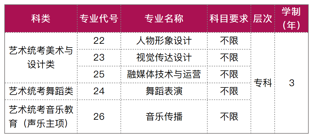 专业成绩:不低于尚有空余计划类别省级统考专业专科录取最低控制分数线。